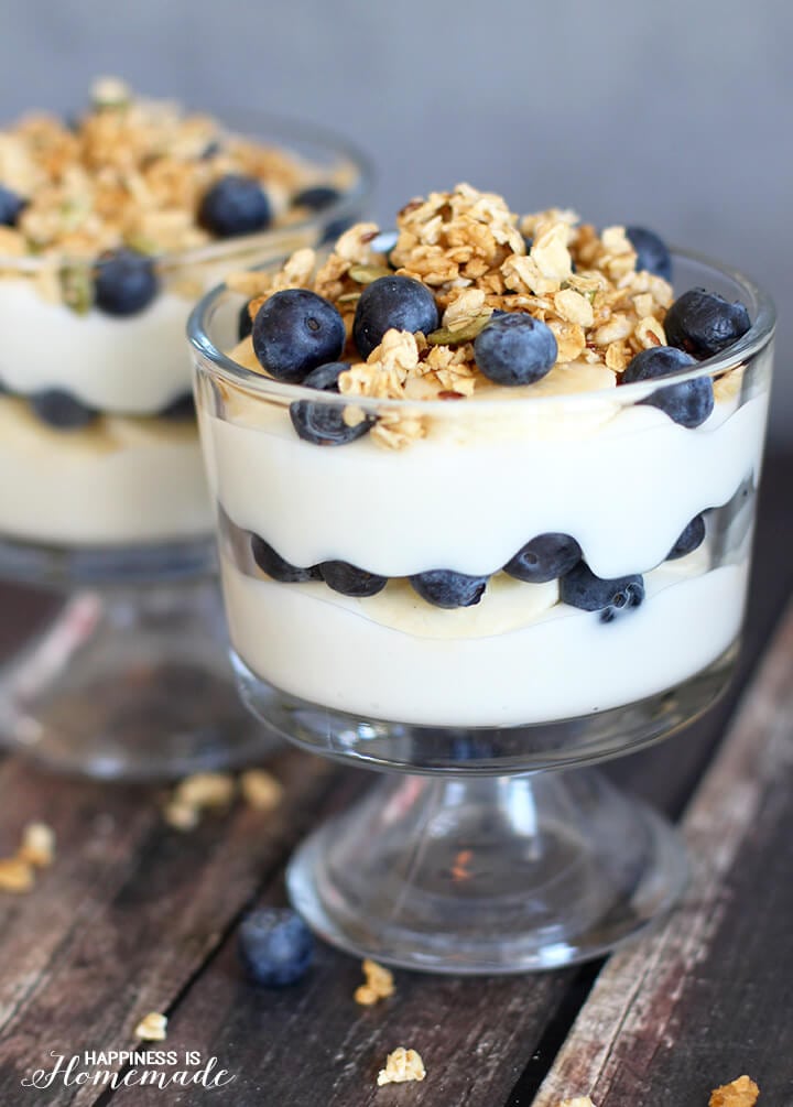 Blueberry and Banana Breakfast Parfaits from Happiness is Homemade